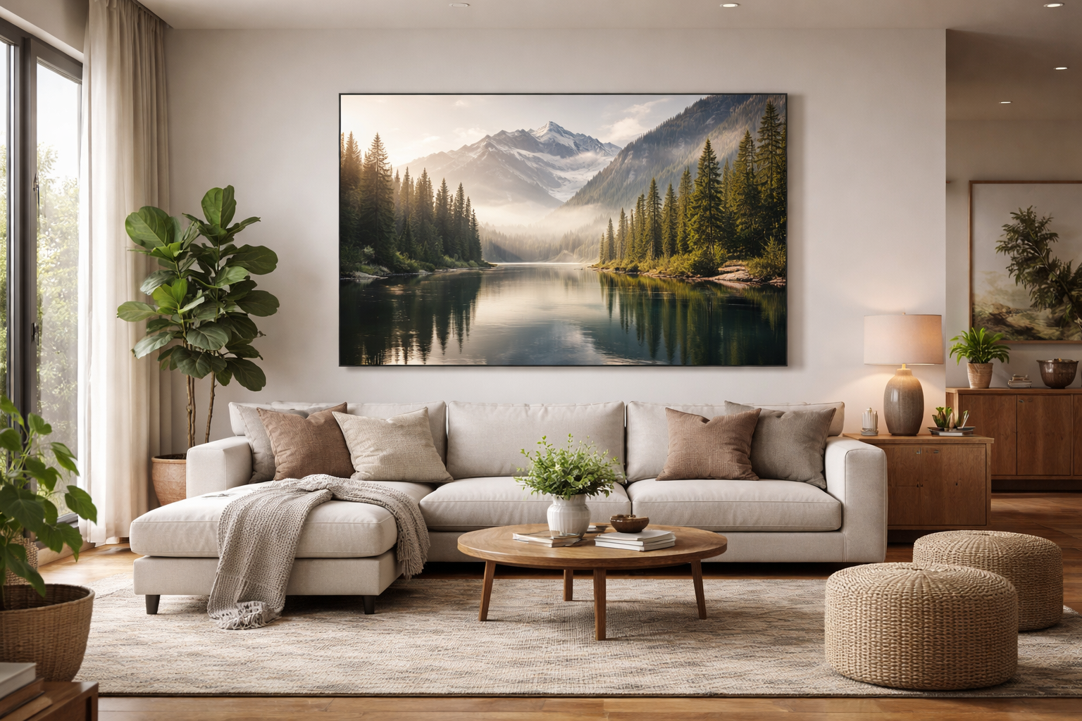 תמונות נוף לסלון: הכנסת הטבע פנימה ליצירת תחושת מרחב ושלווה